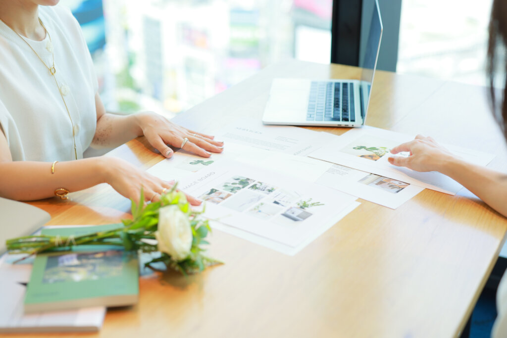 クライアントさんの事業のこと、どうしてこの教室をやろうと思ったのか、今どんなお客さんが来てくれて、どんな喜びの声をいただいているのか、今やりがいを感じている事は何かなど深く質問をたくさんさせていただいて、それをもとに「誰に」という指標を視点に、その人に伝わる活動の軸となるブランドコンセプトというものをお作りしてから、構成やデザインを考えていきます。